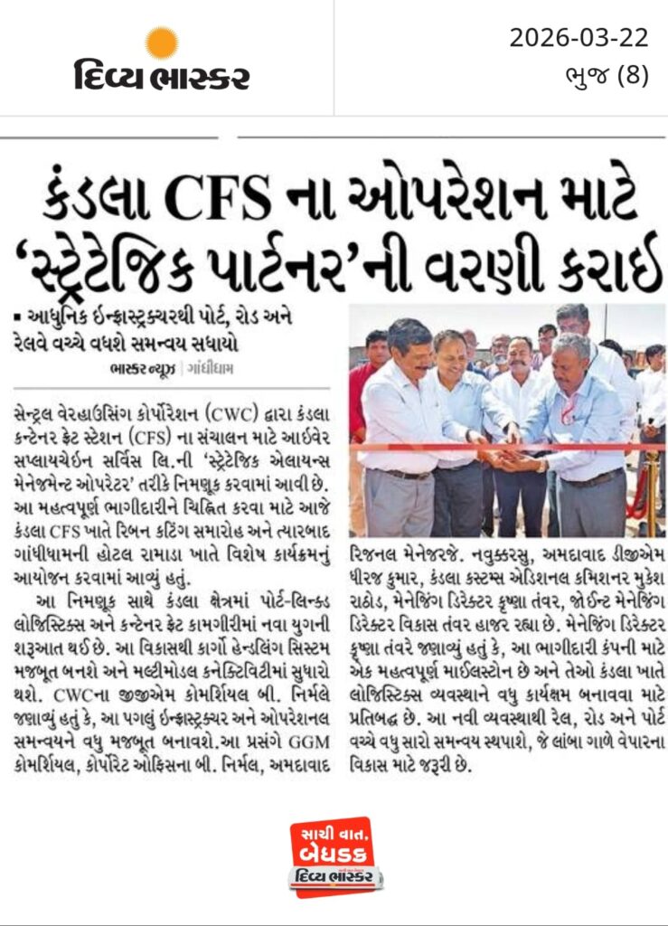 CWC Appoints iWare as Strategic Alliance Management Operator for Kandla CFS